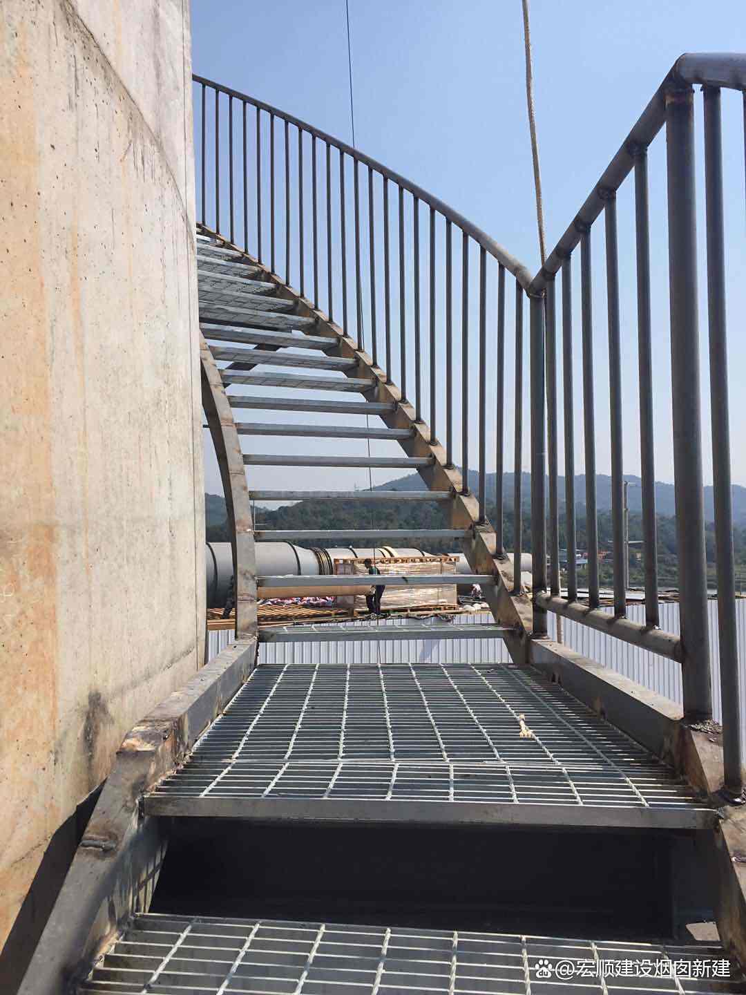 結構特點:沿煙囪外壁呈螺旋狀上升,坡度通常為30°~45°,踏步寬度≥25cm,扶手高度≥1.1m。